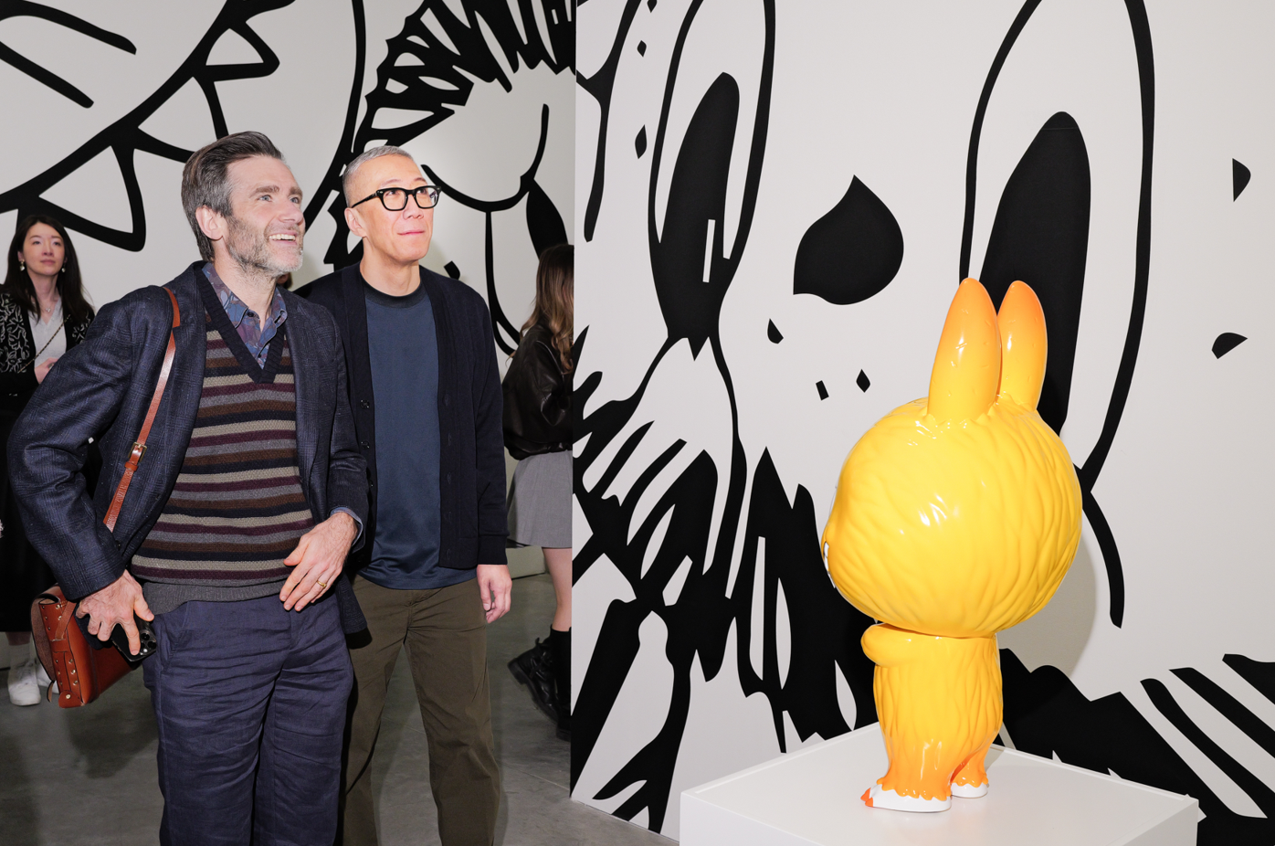 THE MONSTERS艺术家龙家升(右)与《帕丁顿熊》系列电影导演保罗·金(左)在THE MONSTERS十周年全球巡展巴黎站交流