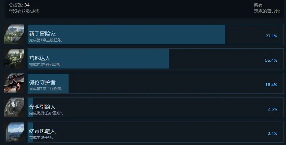当你完成所有主线任务后,会解锁一项名为“终章执笔人”(Expert Storyteller)的成就。在 Steam 平台上,仅有约 2% 的玩家解锁了该成就,足见游戏的探索内容体量之大。